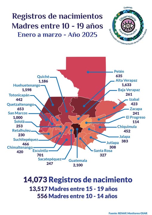 Los datos publicados por el Observatorio de Salud Reproductiva de Guatemala muestran que 556 niñas menores de 14 años y 13,517 adolescentes entre 15 y 19 son niñas convertidas en madres y todo esto de enero a marzo del 2025, no son solo cifras. Son historias truncadas, representan cuerpos violentados y un sistema que normaliza el abuso, con una población indiferente y lo peor, con autoridades indolentes.